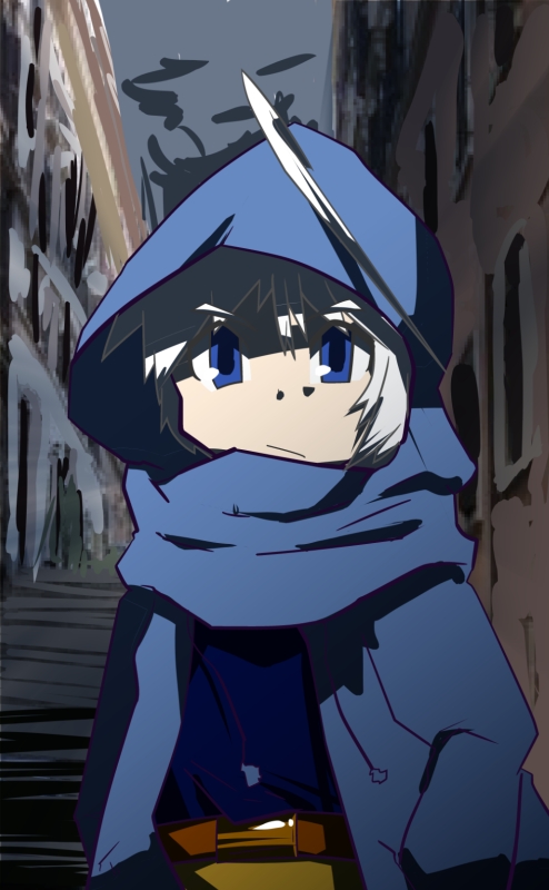 師匠の形見の蒼いコートと真っ白な髪がトレンドマーク。髪が白いのは生まれつき。